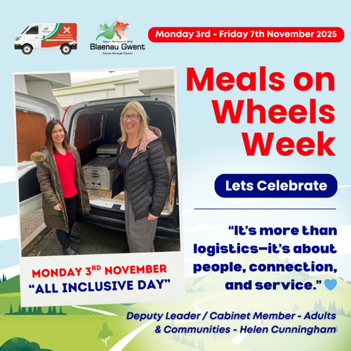 Blaenau Gwent County Borough Council is proud to announce its participation in Meals on Wheels Week 2025, taking place from 3rd to 7th November. This initiative celebrates the vital role that community meals services play in supporting older adults and vulnerable residents across the UK—and right here in Blaenau Gwent.