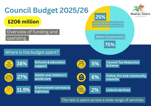 Council Tax in the Blaenau Gwent area currently makes up 25% of our overall budget, which is the third lowest in Wales.